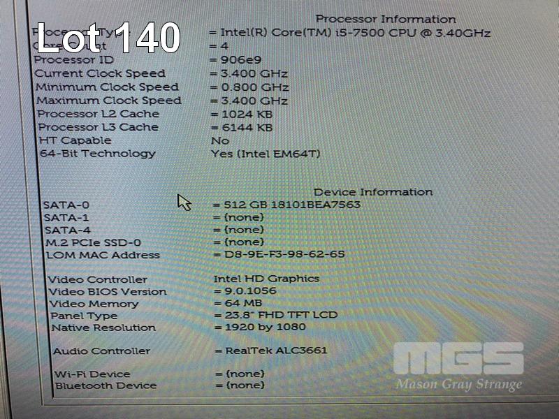 ALL-IN-ONE PC, DELL OPTIPLEX 7450, CORE i5 7500 (7TH GEN) @ 3.4GHz, 8GB DDR4 RAM, 512GB SSD, INBUILT 23.8" FHD WIDESCREEN (1920x1080), INTEL HD VIDEO, WEBCAM, 7 x USB, 1 x USB-C, WINDOWS 10 HOME INSTALLED, KEYBOARD & MOUSE S/N:GK6L6Q2