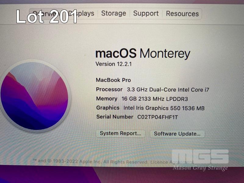 LAPTOP, APPLE MACBOOK PRO (A1706), CORE i7 6567U (6TH GEN) @ 3.3GHz, 16GB DDR3 RAM, 1TB SSD, 13.3" RETINA DISPLAY (2560x1600), INTEL IRIS GRAPHICS 550, THUNDERBOLT 3, TOUCHBAR, Wi-Fi, BLUETOOTH, MAC OS 12 INSTALLED & USB-C POWER SUPPLY (NOTE: MINOR MARKS ON SCREEN) S/N:C02TP04FHF1T