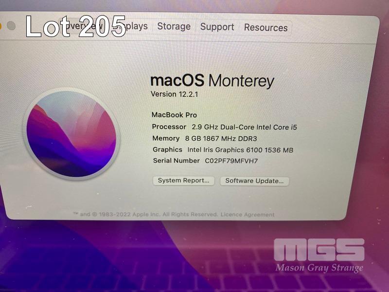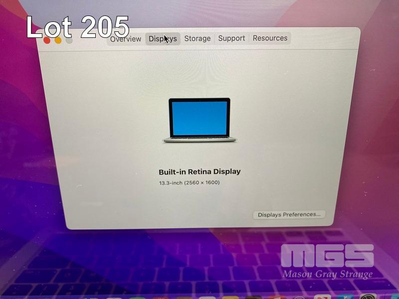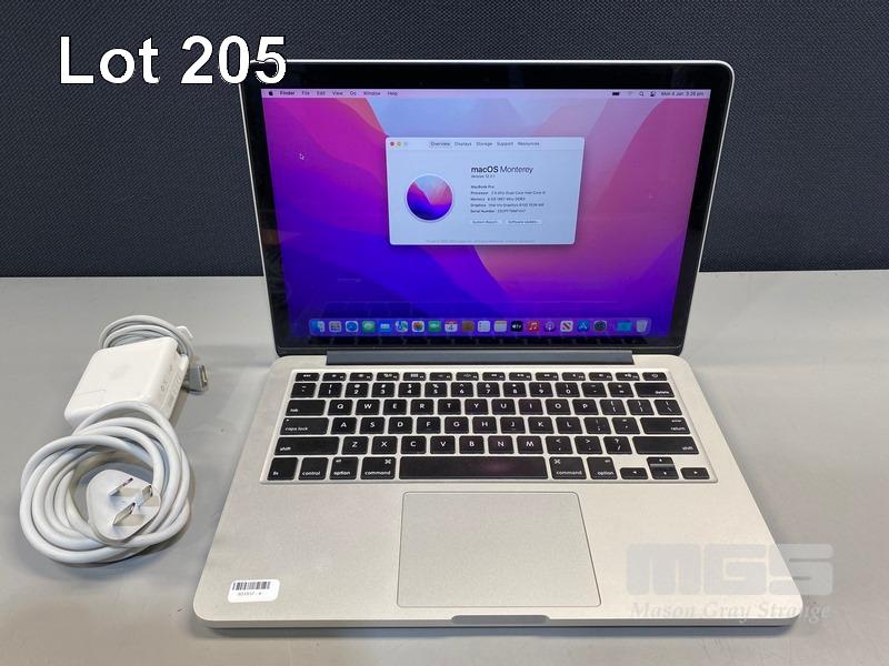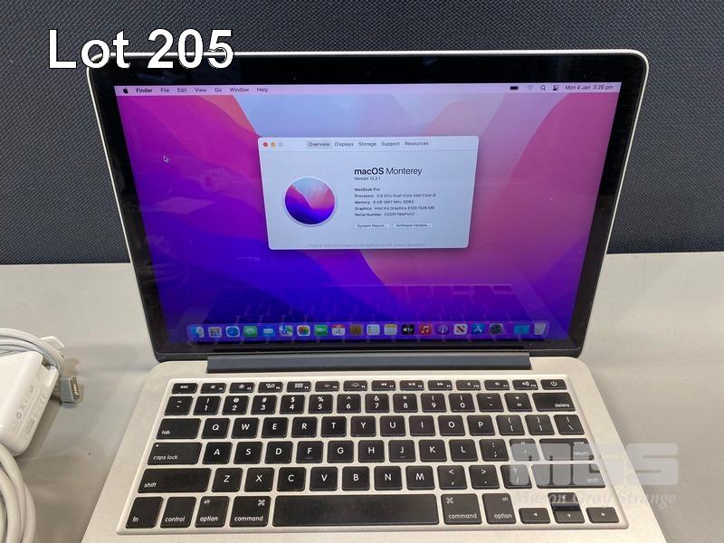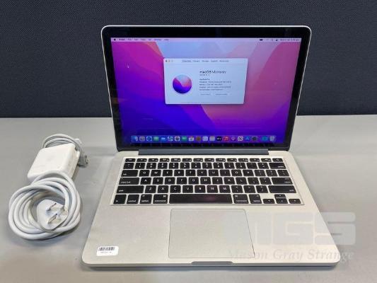 LAPTOP, APPLE MACBOOK PRO (A1502), CORE i5 5287U (5TH GEN) @ 2.9GHz, 8GB DDR3 RAM, 512GB SSD, 13.3" RETINA DISPLAY (2560x1600), INTEL IRIS GRAPHICS 6100, Wi-Fi, BLUETOOTH, MAC OS 12 INSTALLED & POWER SUPPLY S/N:C02PF79MFVH7