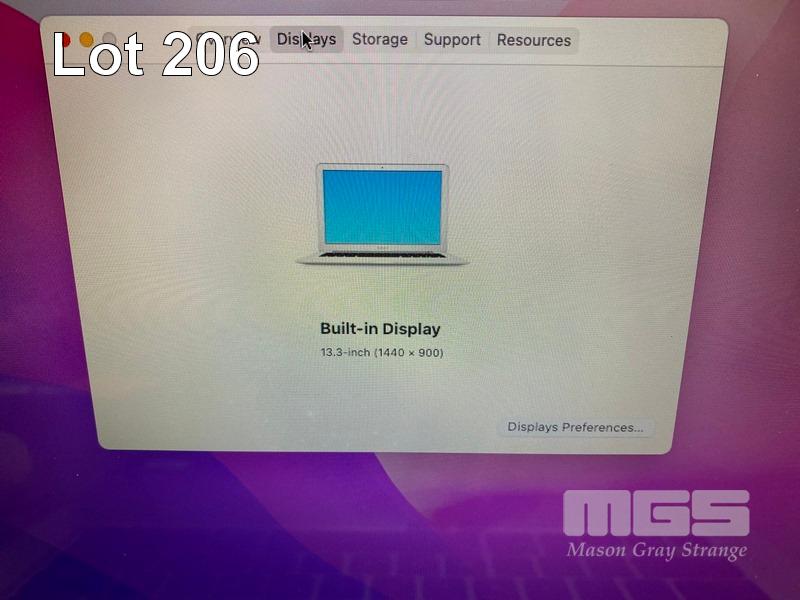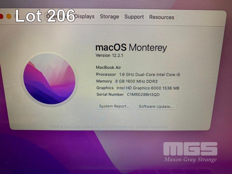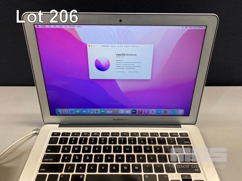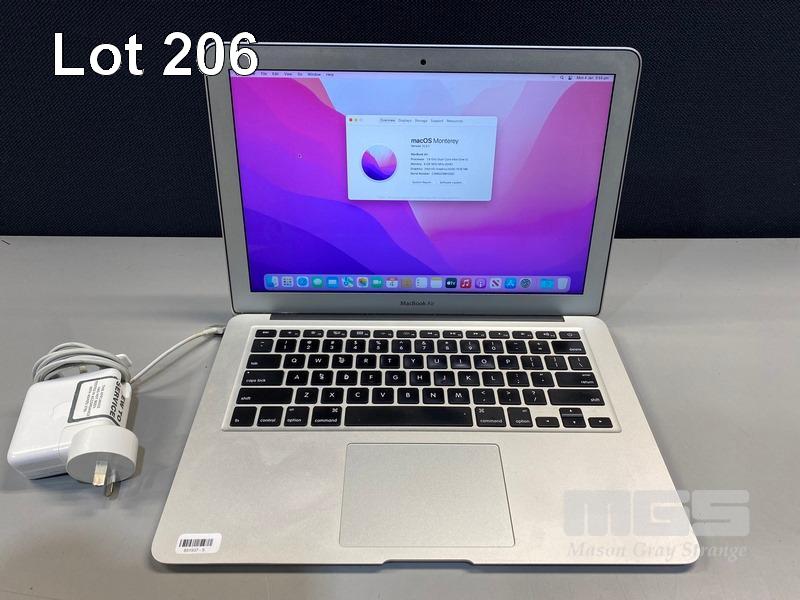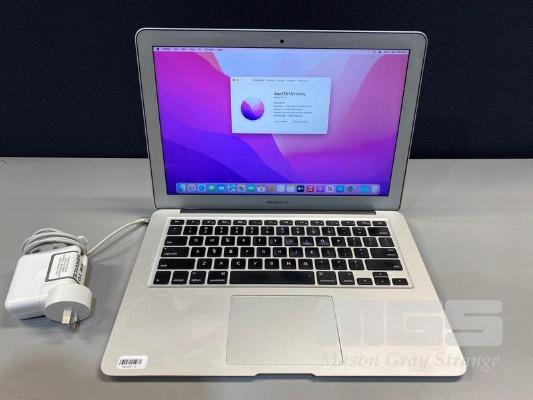 LAPTOP, APPLE MACBOOK AIR (A1466), CORE i5 5250U (5TH GEN) @ 1.6GHz, 8GB DDR3 RAM, 128GB SSD, 13.3" WIDESCREEN (1440x900), INTEL HD GRAPHICS 6000, Wi-Fi, BLUETOOTH, MAC OS 12 INSTALLED & POWER SUPPLY (NOTE: SOME KEYS WORN) S/N:C1MRD29BH3QD