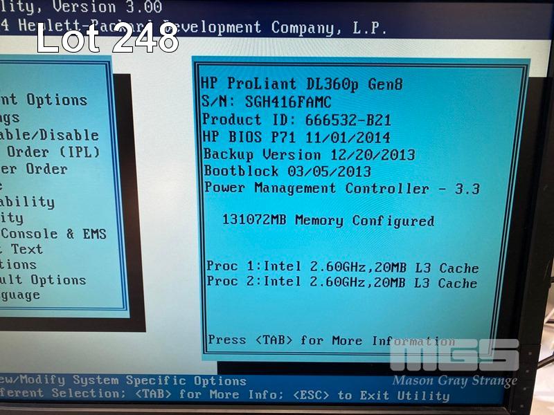 RACKMOUNT SERVER, HP PROLIANT DL360p Gen8, 1U, 2 x XEON E5-2650 v2 @ 2.6GHz, 128GB ECC DDR3 RAM, 6 x 146GB SAS HDD, 2 x PSU (NO CABLES) S/N:SGH416FAMC