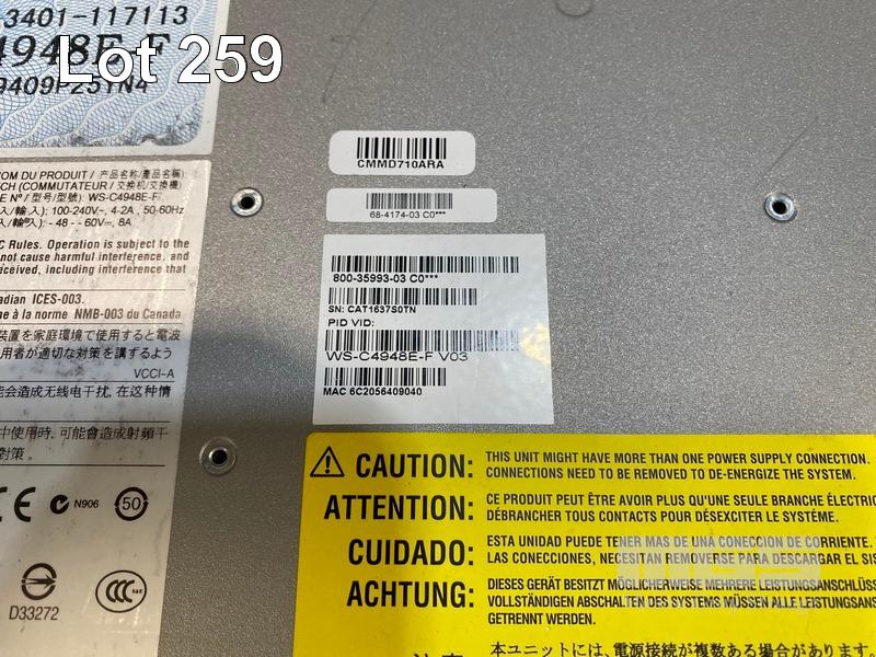CISCO CATALYST 4948E-F 48-PORT SWITCH, WS-C4948E-F V03 (NO CABLES) S/N:CAT1637S0TN