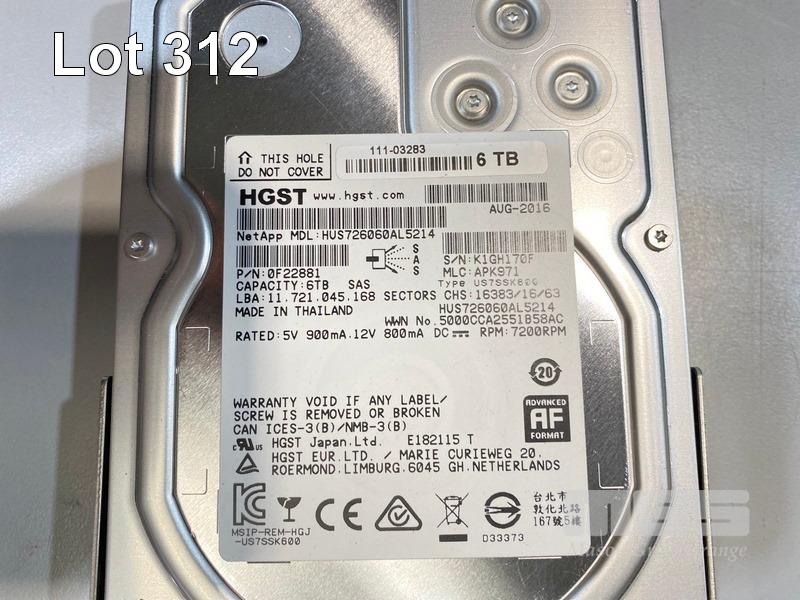 6 x HGST 6TB SAS (12Gbps) HARD DRIVES, 3.5" WITH NETAPP CADDIES (0F22881)