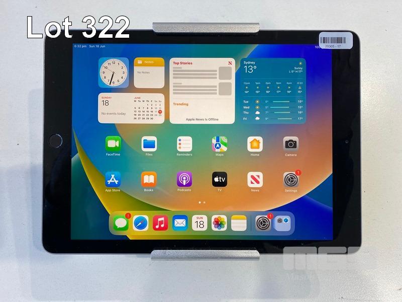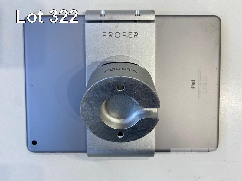 APPLE iPAD 6TH GEN, 32GB, Wi-Fi, SPACE GREY, MODEL MR7F2X/A WITH CABLE, CHARGER & STUDIO PROPER KOUNTA POS DESK STAND S/N:DMQZ2YBPJF8J