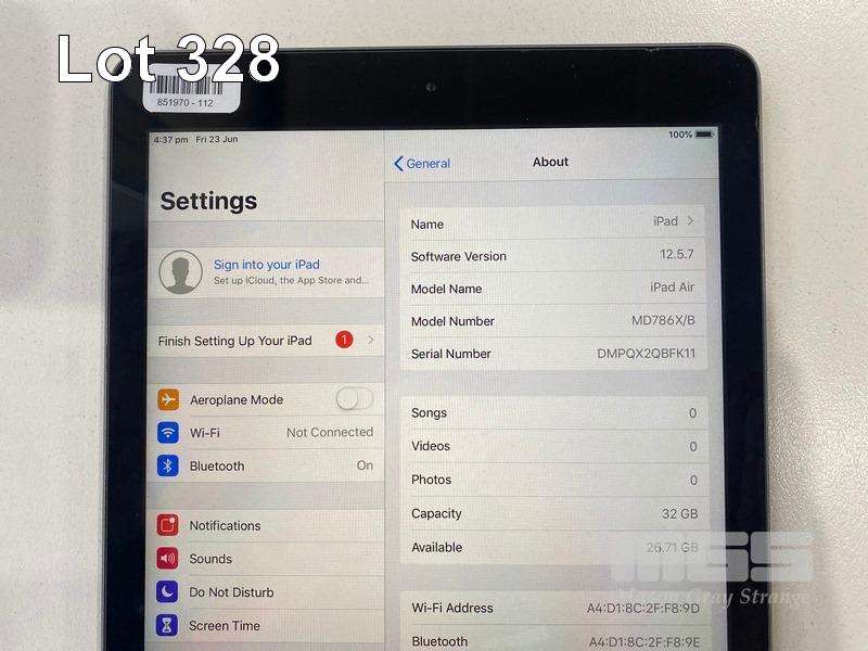 APPLE iPAD AIR, 32GB, Wi-Fi, SPACE GREY, MODEL A1474, MD786X/B (NO CABLE, NO CHARGER) S/N:DMPQX2QBFK11