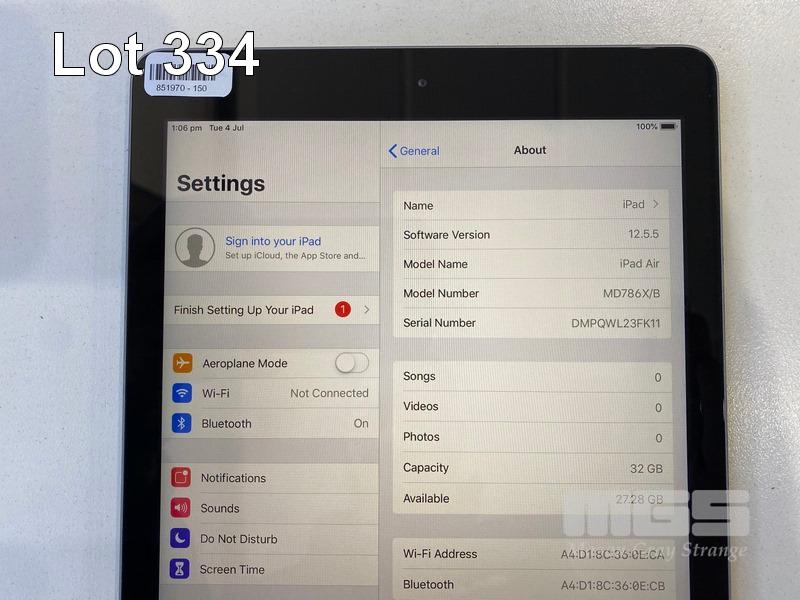 APPLE iPAD AIR, 32GB, Wi-Fi, SPACE GREY, MODEL A1474, MD786X/B (NO CABLE, NO CHARGER) S/N:DMPQWL23FK11