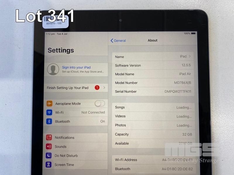 APPLE iPAD AIR, 32GB, Wi-Fi, SPACE GREY, MODEL A1474, MD786X/B (NO CABLE, NO CHARGER) S/N:DMPQW2TTFK11