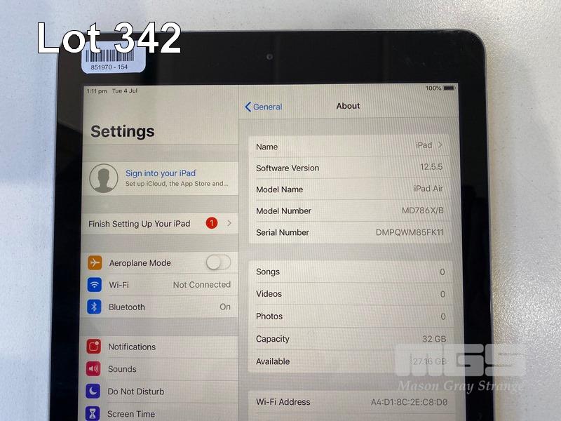APPLE iPAD AIR, 32GB, Wi-Fi, SPACE GREY, MODEL A1474, MD786X/B (NO CABLE, NO CHARGER) S/N:DMPQWM85FK11