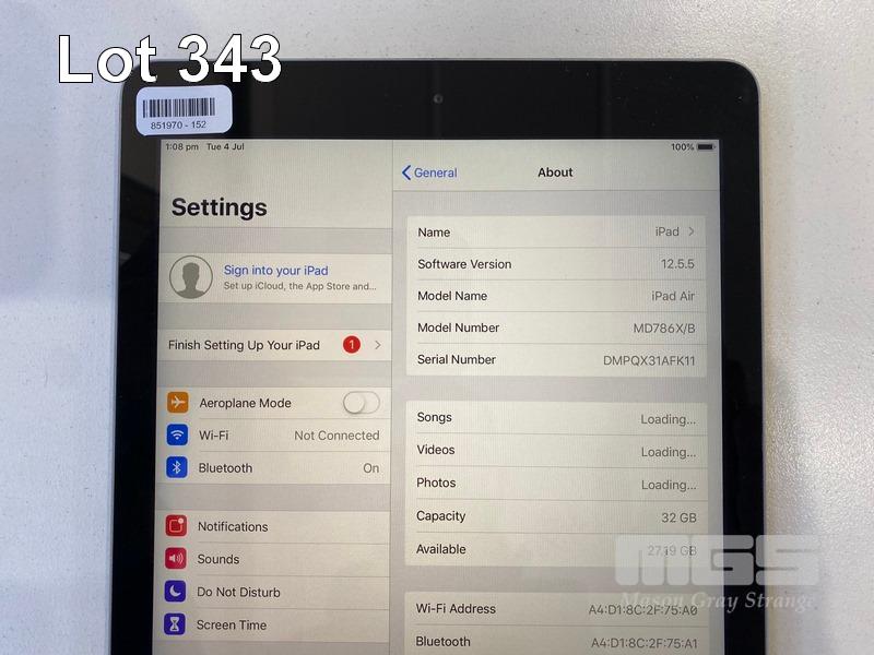 APPLE iPAD AIR, 32GB, Wi-Fi, SPACE GREY, MODEL A1474, MD786X/B (NO CABLE, NO CHARGER) S/N:DMPQX31AFK11