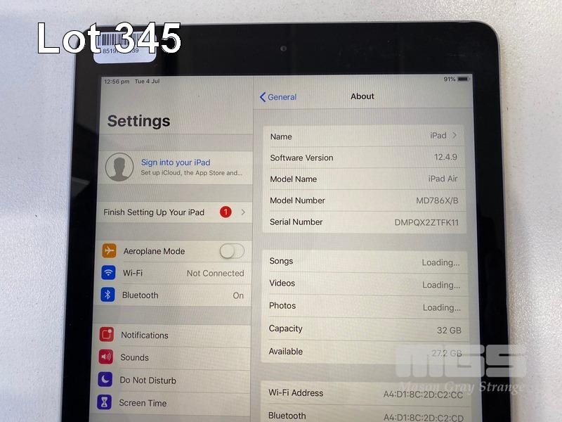 APPLE iPAD AIR, 32GB, Wi-Fi, SPACE GREY, MODEL A1474, MD786X/B (NO CABLE, NO CHARGER) S/N:DMPQX2ZTFK11