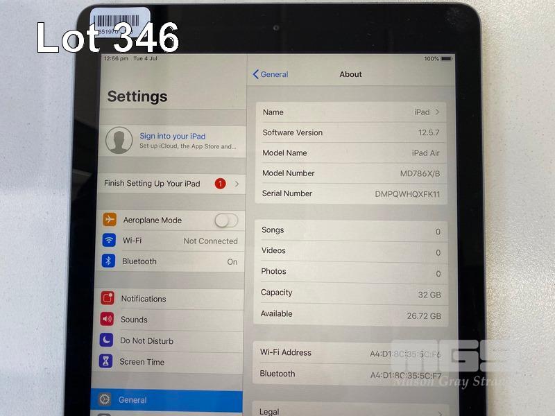 APPLE iPAD AIR, 32GB, Wi-Fi, SPACE GREY, MODEL A1474, MD786X/B (NO CABLE, NO CHARGER) S/N:DMPQWHQXFK11