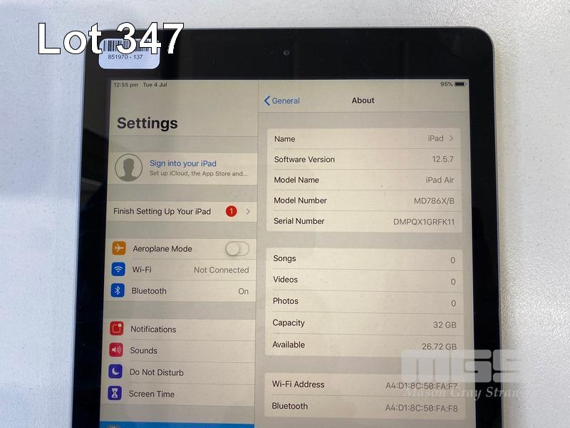 APPLE iPAD AIR, 32GB, Wi-Fi, SPACE GREY, MODEL A1474, MD786X/B (NO CABLE, NO CHARGER) S/N:DMPQX1GRFK11