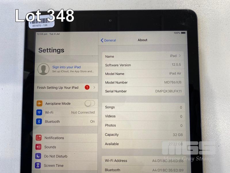 APPLE iPAD AIR, 32GB, Wi-Fi, SPACE GREY, MODEL A1474, MD786X/B (NO CABLE, NO CHARGER) S/N:DMPQX30UFK11