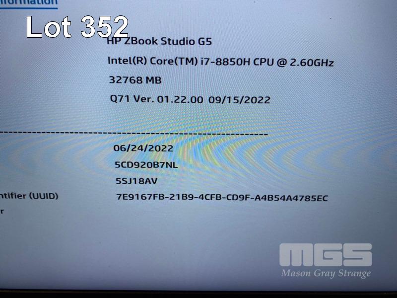 LAPTOP, HP ZBOOK STUDIO G5 MOBILE WORKSTATION (5SJ18AV), CORE i7 8850H (8TH GEN) @ 2.6GHz, 32GB DDR4 RAM, 512GB NVMe M.2 SSD, 15.6" WIDESCREEN (1920x1080), 4GB NVIDIA QUADRO P2000 VIDEO, Wi-Fi, BLUETOOTH, WINDOWS 11 PRO INSTALLED & POWER SUPPLY S/N:5CD920B7NL