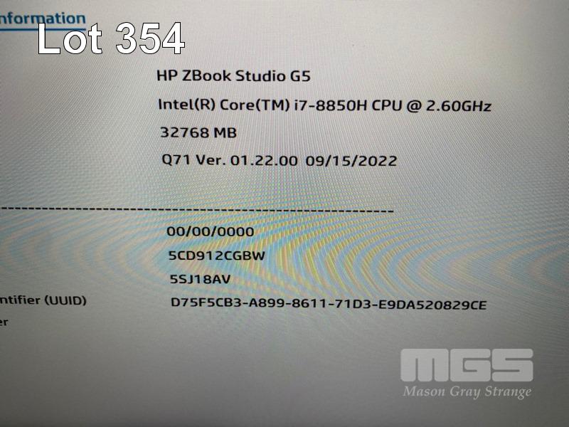 LAPTOP, HP ZBOOK STUDIO G5 MOBILE WORKSTATION (5SJ18AV), CORE i7 8850H (8TH GEN) @ 2.6GHz, 32GB DDR4 RAM, 512GB NVMe M.2 SSD, 15.6" WIDESCREEN (1920x1080), 4GB NVIDIA QUADRO P2000 VIDEO, Wi-Fi, BLUETOOTH, WINDOWS 11 PRO INSTALLED & POWER SUPPLY S/N:5CD912CGBW