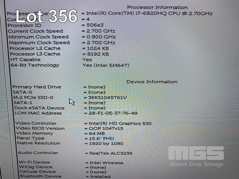 LAPTOP, DELL PRECISION 3510, CORE i7 6820HQ (6TH GEN) @ 2.7GHz, 32GB DDR4 RAM, 1TB NVMe M.2 SSD, 15.6" WIDESCREEN (1920x1080), 2GB AMD RADEON R9 M360, INTEL HD GRAPHICS 530, Wi-Fi, BLUETOOTH, WINDOWS 10 PRO INSTALLED & POWER SUPPLY S/N:54PHMC2