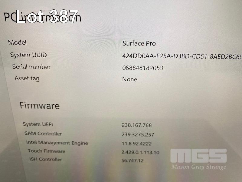 TABLET PC, MICROSOFT SURFACE PRO 5TH GEN, MODEL 1807, CORE i5 7300U (7TH GEN) @ 2.6GHz, 8GB RAM, 256GB SSD, 12.3" TOUCHSCREEN (2736x1824), INTEL HD GRAPHICS 620, Wi-Fi, CELLULAR, BLUETOOTH, WINDOWS 10 PRO INSTALLED, KEYBOARD TYPE COVER & POWER SUPPLY S/N:068848182053