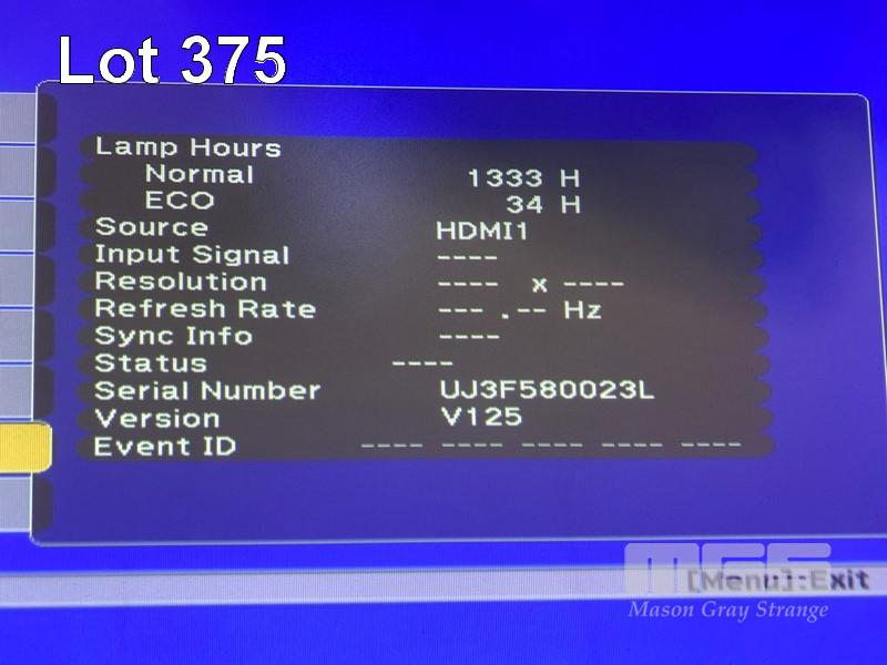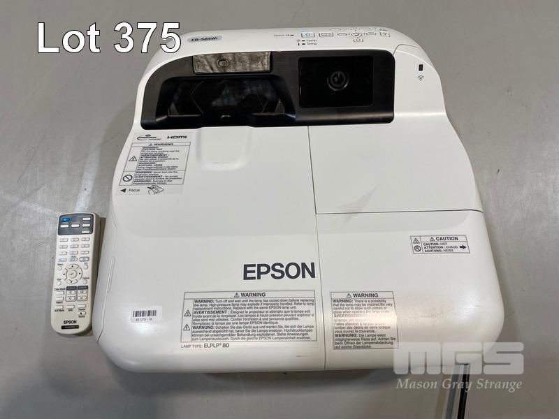PROJECTOR, EPSON EB-585Wi ULTRA SHORT-THROW 3LCD, 3,300 LUMENS, HDMI INPUT WITH REMOTE, 1,333 NORMAL HOURS & 34 ECO HOURS SHOWING S/N:UJ3F580023L