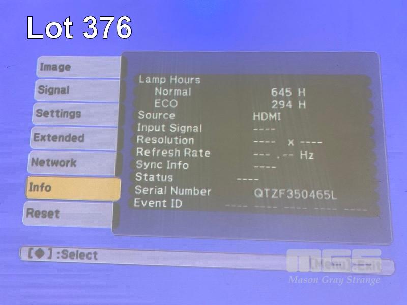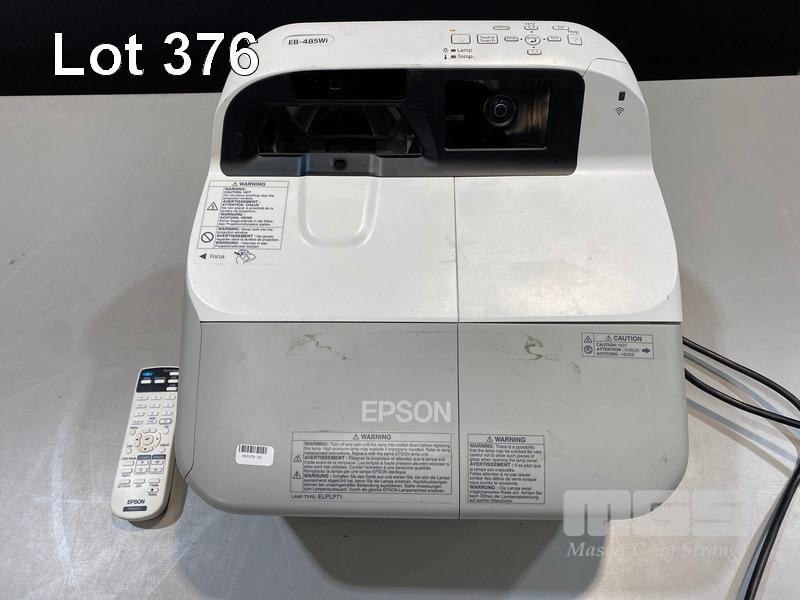 PROJECTOR, EPSON EB-485Wi ULTRA SHORT-THROW 3LCD, 3,100 LUMENS, HDMI INPUT WITH REMOTE, 645 NORMAL HOURS & 294 ECO HOURS SHOWING (NOTE: POOR DISPLAY) S/N:QTZF350465L