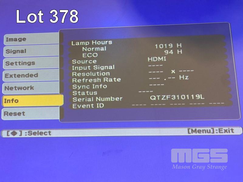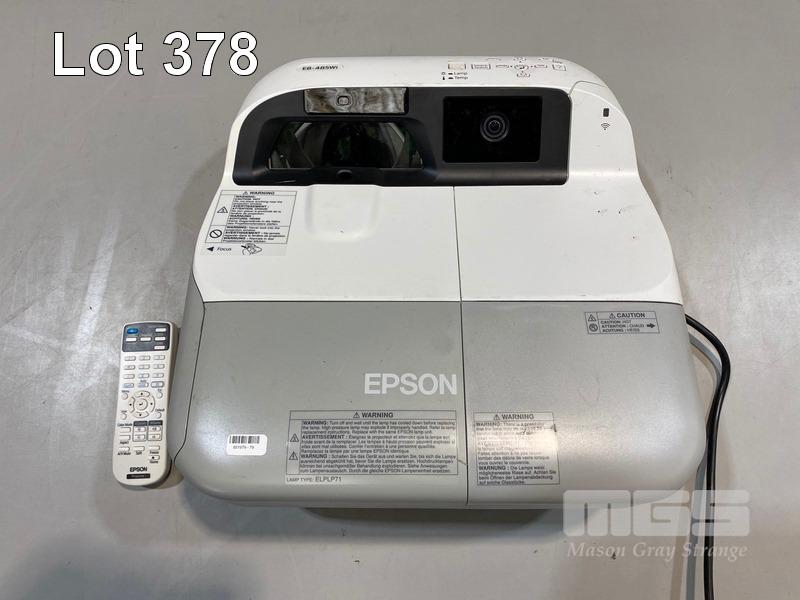 PROJECTOR, EPSON EB-485Wi ULTRA SHORT-THROW 3LCD, 3,100 LUMENS, HDMI INPUT WITH REMOTE, 1,019 NORMAL HOURS & 94 ECO HOURS SHOWING S/N:QTZF310119L