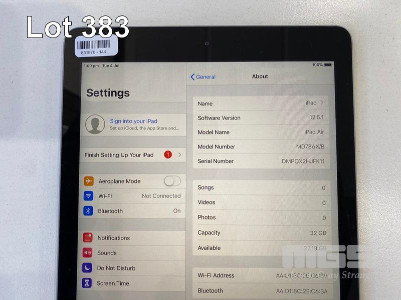 APPLE iPAD AIR, 32GB, Wi-Fi, SPACE GREY, MODEL A1474, MD786X/B (NO CABLE, NO CHARGER) S/N:DMPQX2HJFK11