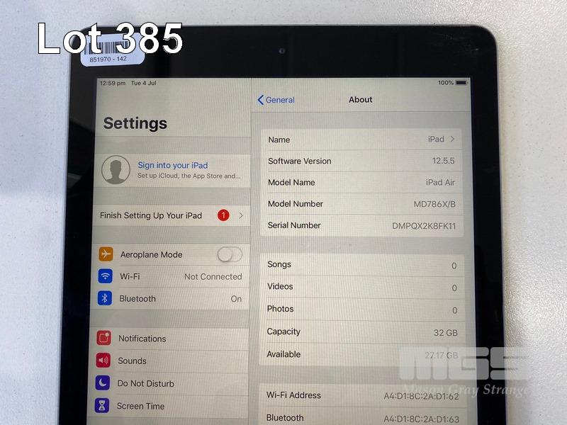 APPLE iPAD AIR, 32GB, Wi-Fi, SPACE GREY, MODEL A1474, MD786X/B (NO CABLE, NO CHARGER) S/N:DMPQX2K8FK11