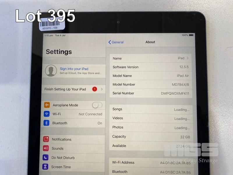 APPLE iPAD AIR, 32GB, Wi-Fi, SPACE GREY, MODEL A1474, MD786X/B (NO CABLE, NO CHARGER) S/N:DMPQWDXMFK11