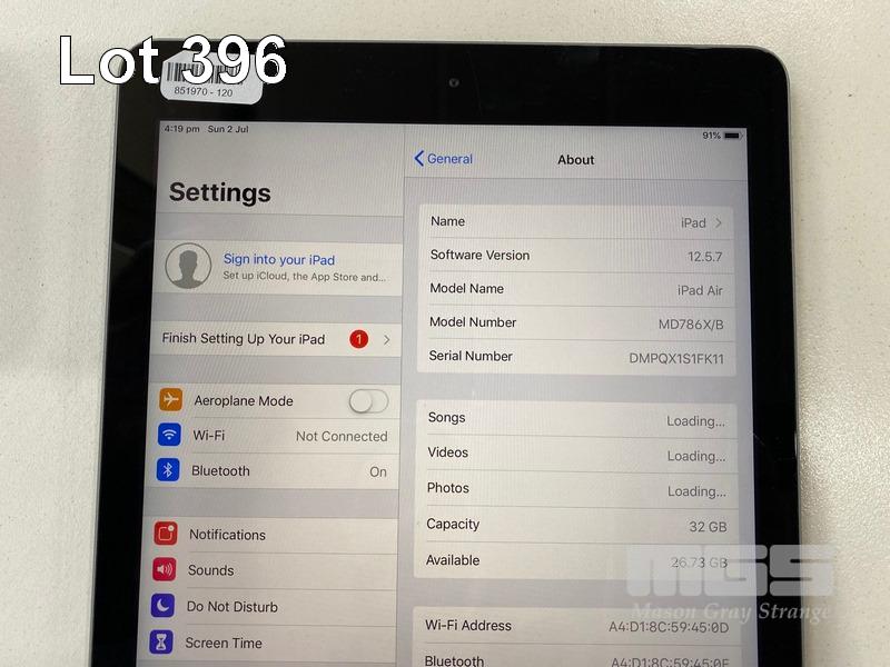 APPLE iPAD AIR, 32GB, Wi-Fi, SPACE GREY, MODEL A1474, MD786X/B (NO CABLE, NO CHARGER) S/N:DMPQX1S1FK11