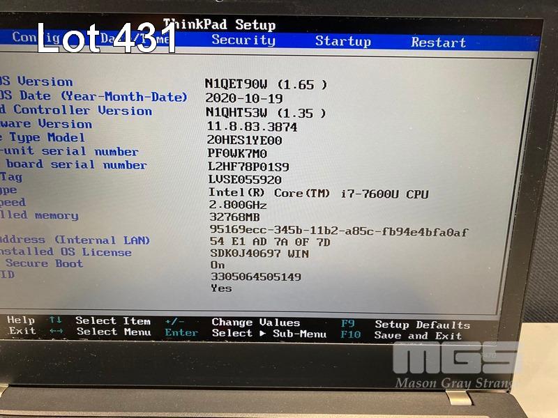 LAPTOP, LENOVO THINKPAD T470, TYPE 20HE, CORE i7 7600U (7TH GEN) @ 2.8GHz, 32GB DDR4 RAM, 512GB NVMe M.2 SSD, 14" WIDESCREEN (1920x1080), INTEL HD VIDEO, Wi-Fi, BLUETOOTH, WINDOWS 10 PRO INSTALLED & POWER SUPPLY (NOTE: MINOR MARKS ON SCREEN) S/N:PF0WK7M0