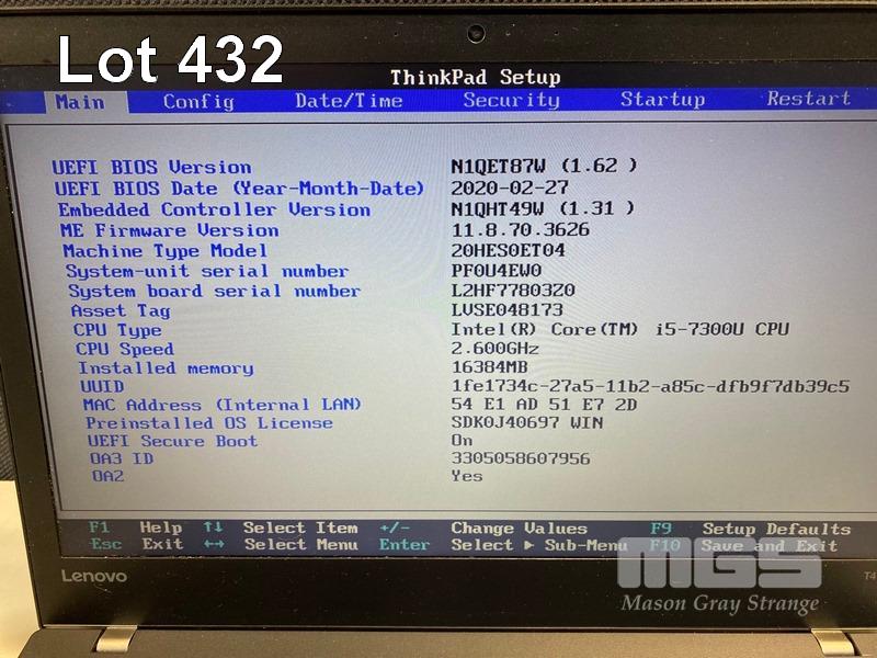 LAPTOP, LENOVO THINKPAD T470, TYPE 20HE, CORE i5 7300U (7TH GEN) @ 2.6GHz, 16GB DDR4 RAM, 256GB NVMe M.2 SSD, 14" WIDESCREEN (1366x768), INTEL HD VIDEO, Wi-Fi, BLUETOOTH, WINDOWS 10 PRO INSTALLED & POWER SUPPLY S/N:PF0U4EW0