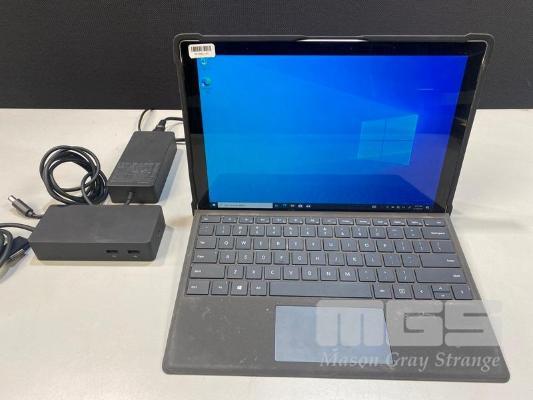 TABLET PC, MICROSOFT SURFACE PRO 5TH GEN, MODEL 1807, CORE i5 7300U (7TH GEN) @ 2.6GHz, 4GB RAM, 128GB SSD, 12.3" TOUCHSCREEN (2736x1824), INTEL HD GRAPHICS 620, Wi-Fi, CELLULAR, BLUETOOTH, WINDOWS 10 PRO INSTALLED, KEYBOARD TYPE COVER, STM DUX SHELL CASE (NO TABLET POWER SUPPLY) WITH SURFACE DOCK (MODEL 1661) & POWER SUPPLY (MODEL 1749) S/N:049048382853