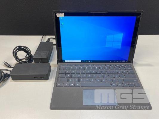 TABLET PC, MICROSOFT SURFACE PRO 5TH GEN, MODEL 1807, CORE i5 7300U (7TH GEN) @ 2.6GHz, 4GB RAM, 128GB SSD, 12.3" TOUCHSCREEN (2736x1824), INTEL HD GRAPHICS 620, Wi-Fi, CELLULAR, BLUETOOTH, WINDOWS 10 PRO INSTALLED, KEYBOARD TYPE COVER, STM DUX SHELL CASE (NO TABLET POWER SUPPLY) WITH SURFACE DOCK (MODEL 1661) & POWER SUPPLY (MODEL 1749) S/N:050079782853