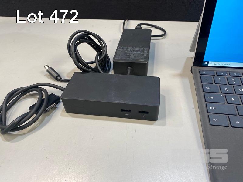 TABLET PC, MICROSOFT SURFACE PRO 5TH GEN, MODEL 1807, CORE i5 7300U (7TH GEN) @ 2.6GHz, 4GB RAM, 128GB SSD, 12.3" TOUCHSCREEN (2736x1824), INTEL HD GRAPHICS 620, Wi-Fi, CELLULAR, BLUETOOTH, WINDOWS 10 PRO INSTALLED, KEYBOARD TYPE COVER (NO TABLET POWER SUPPLY) WITH SURFACE DOCK (MODEL 1661) & POWER SUPPLY (MODEL 1749) S/N:050072782853