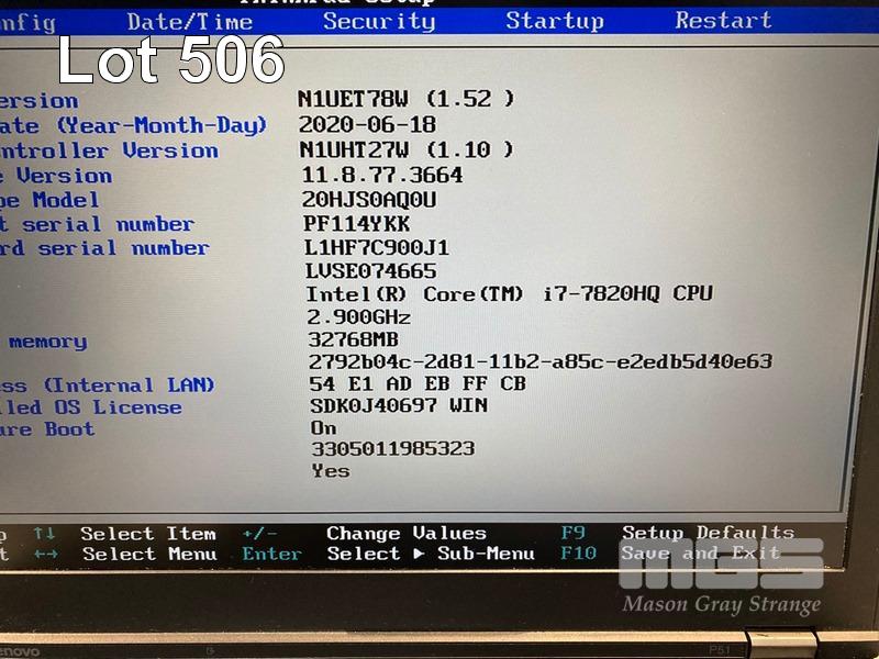 LAPTOP, LENOVO THINKPAD P51 MOBILE WORKSTATION, TYPE 20HJ, CORE i7 7820HQ (7TH GEN) @ 2.9GHz, 32GB DDR4 RAM, 512GB NVMe M.2 SSD, 15.6" WIDESCREEN (1920x1080), 4GB NVIDIA QUADRO M2200 VIDEO, Wi-Fi, BLUETOOTH, WINDOWS 10 PRO INSTALLED (NO POWER SUPPLY) (NOTE: MINOR MARKS ON SCREEN) S/N:PF114YKK