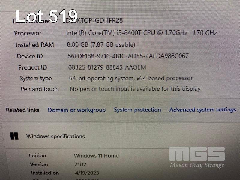 TINY-IN-ONE PC, LENOVO THINKCENTRE M720q, CORE i5 8400T (8TH GEN) @ 1.7GHz, 8GB DDR4 RAM, 256GB SSD, TIO24Gen3 23.8" LED-BL LCD WIDESCREEN, WEBCAM, Wi-Fi, WINDOWS 11 HOME INSTALLED & POWER SUPPLY (NO KEYBOARD, NO MOUSE) (NOTE: SCRATCHES ON SCREEN) S/N:PC111TC1