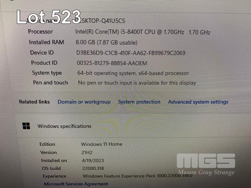 TINY-IN-ONE PC, LENOVO THINKCENTRE M720q, CORE i5 8400T (8TH GEN) @ 1.7GHz, 8GB DDR4 RAM, 256GB SSD, TIO24Gen3 23.8" LED-BL LCD WIDESCREEN, WEBCAM, Wi-Fi, WINDOWS 11 HOME INSTALLED & POWER SUPPLY (NO KEYBOARD, NO MOUSE) (NOTE: SCRATCHES ON SCREEN) S/N:PC111TCA