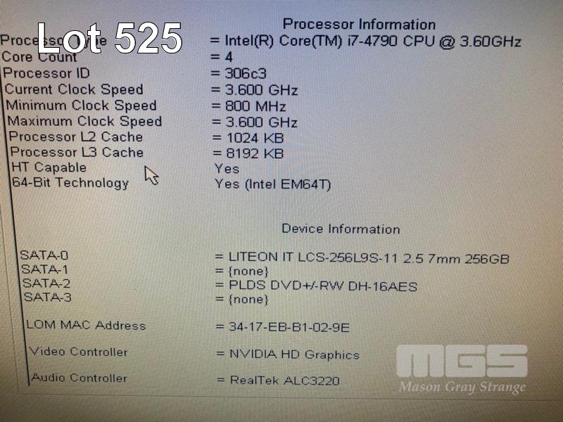 MIDI-TOWER PC, DELL OPTIPLEX 9020, CORE i7 4790 (4TH GEN) @ 3.6GHz, 16GB DDR3 RAM, 256GB SSD, DVD-RW, 1GB NVIDIA GEFORCE GTX 645 VIDEO, 10 x USB, WINDOWS 10 HOME INSTALLED (NO KEYBOARD, NO MOUSE) S/N:F2QCW22
