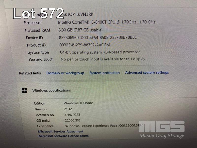 TINY-IN-ONE PC, LENOVO THINKCENTRE M720q, CORE i5 8400T (8TH GEN) @ 1.7GHz, 8GB DDR4 RAM, 256GB SSD, TIO24Gen3 23.8" LED-BL LCD WIDESCREEN, WEBCAM, Wi-Fi, WINDOWS 11 HOME INSTALLED & POWER SUPPLY (NO KEYBOARD, NO MOUSE) (NOTE: SCRATCHES ON SCREEN, LINE ON SCREEN) S/N:PC111TAE