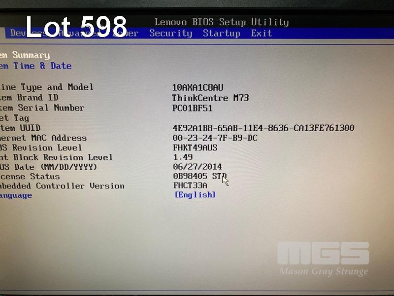 DESKTOP PC, LENOVO THINKCENTRE M73 TINY, CORE i5 4570T (4TH GEN) @ 2.9GHz, 8GB DDR3 RAM, 128GB SSD, WINDOWS 10 HOME INSTALLED & POWER SUPPLY (NO KEYBOARD, NO MOUSE) S/N:PC01BF51