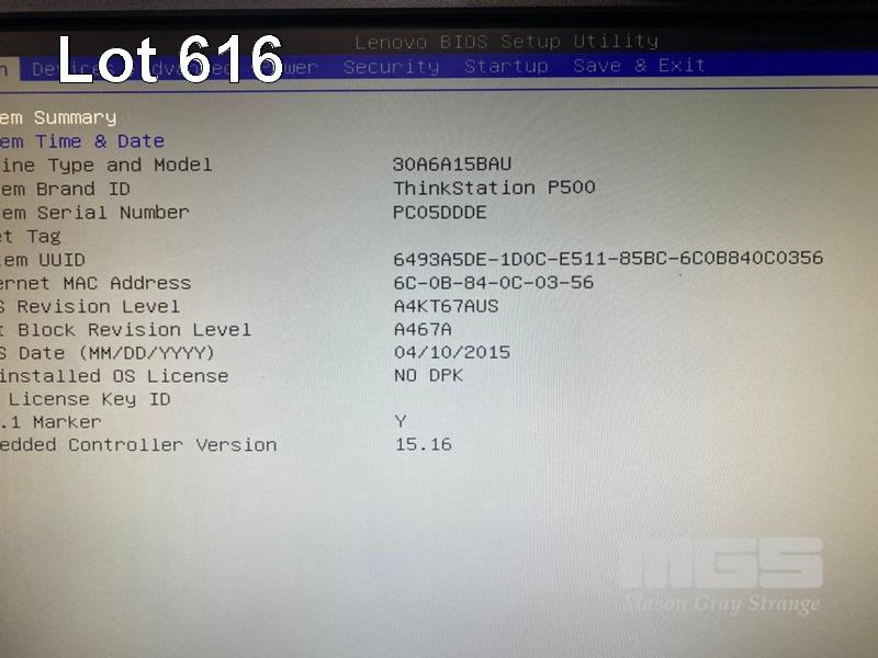 MIDI-TOWER PC, LENOVO THINKSTATION P500 WORKSTATION, XEON E5-1706 v3 @ 3.1GHz, 32GB DDR4 RAM, 256GB M.2 SSD, 500GB SATA HDD, 4GB NVIDIA QUADRO K2200 VIDEO, WINDOWS 10 PRO INSTALLED (NO KEYBOARD, NO MOUSE) S/N:PC05DDDE