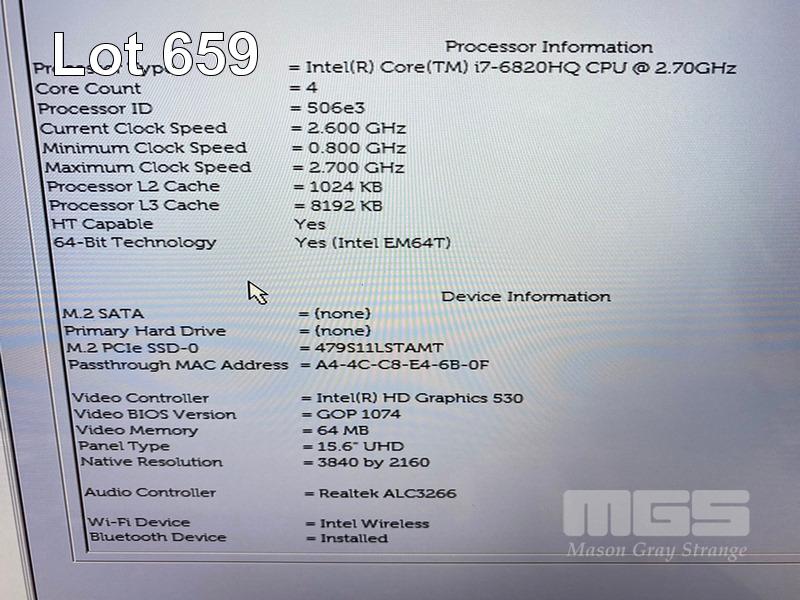 LAPTOP, DELL PRECISION 5520, CORE i7 6820HQ (6TH GEN) @ 2.7GHz, 16GB DDR4 RAM, 256GB NVMe M.2 SSD, 15.6" UHD TOUCHSCREEN (3840x2160), 4GB NVIDIA QUADRO M1200 VIDEO, INTEL HD GRAPHICS 530, Wi-Fi, BLUETOOTH, WINDOWS 10 PRO INSTALLED (NO POWER SUPPLY) (NOTE: DAMAGE TO 4.5mm POWER INPUT) WITH DELL K16A USB-C DOCKING STATION & 180W POWER SUPPLY S/N:6P8BLH2