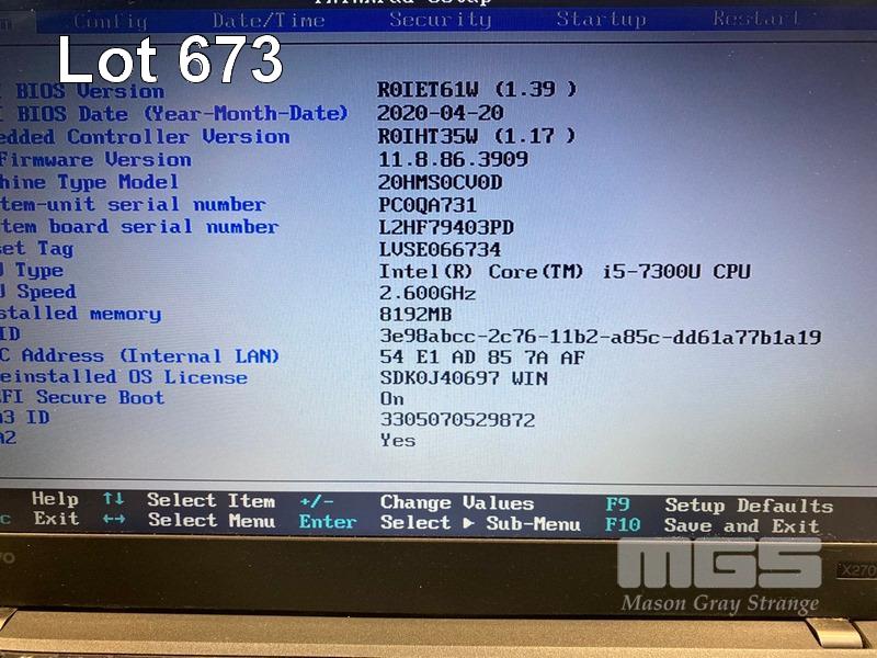 LAPTOP, LENOVO THINKPAD X270, TYPE 20HM, CORE i5 7300U (7TH GEN) @ 2.6GHz, 8GB DDR4 RAM, 256GB NVMe SSD, 12.5" WIDESCREEN (1366x768), INTEL HD VIDEO, Wi-Fi, BLUETOOTH, WINDOWS 10 PRO INSTALLED & POWER SUPPLY (NOTE: MARKS ON SCREEN) S/N:PC0QA731