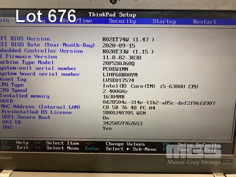 LAPTOP, LENOVO THINKPAD X260, TYPE 20F5, CORE i5 6300U (6TH GEN) @ 2.4GHz, 16GB DDR4 RAM, 525GB SSD, 12.5" WIDESCREEN (1366x768), INTEL HD VIDEO, Wi-Fi, BLUETOOTH, WINDOWS 10 PRO INSTALLED & POWER SUPPLY (NOTE: MINOR MARKS ON SCREEN) S/N:PC0EW1MN