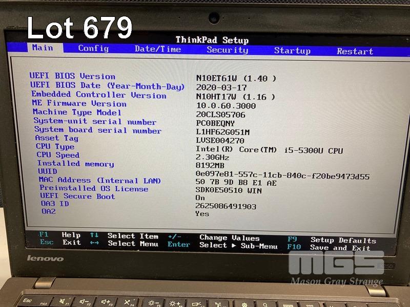 LAPTOP, LENOVO THINKPAD X250, TYPE 20CL, CORE i5 5300U (5TH GEN) @ 2.3GHz, 8GB DDR3 RAM, 275GB SSD, 12.5" WIDESCREEN (1366x768), INTEL HD VIDEO, Wi-Fi, BLUETOOTH, WINDOWS 10 PRO INSTALLED & POWER SUPPLY S/N:PC0BEQNY