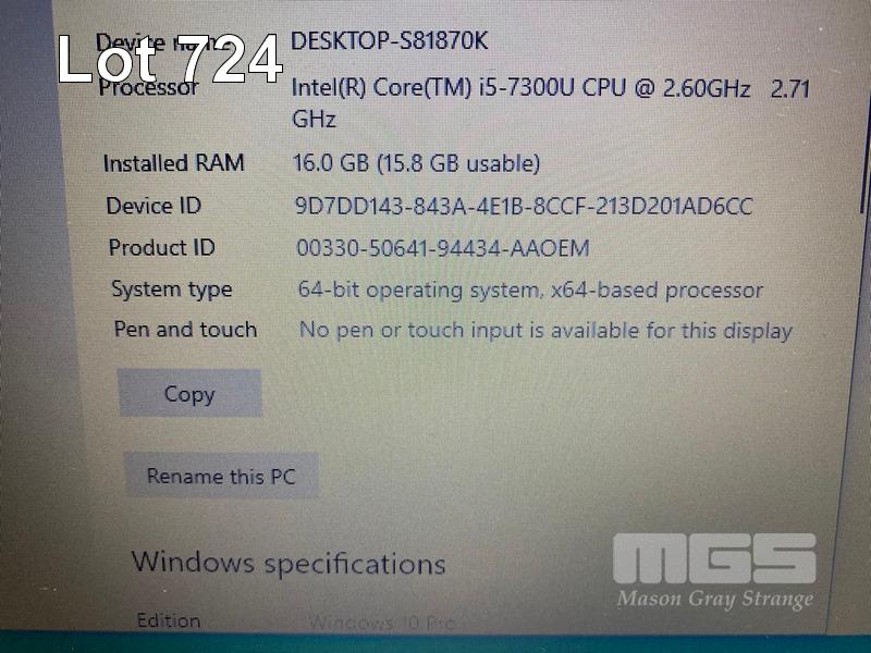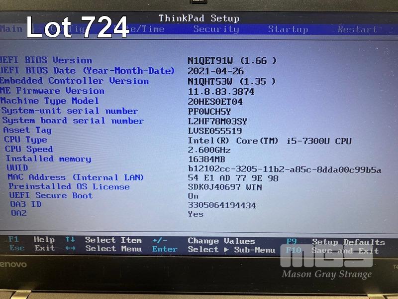 LAPTOP, LENOVO THINKPAD T470, TYPE 20HE, CORE i5 7300U (7TH GEN) @ 2.6GHz, 16GB DDR4 RAM, 256GB NVMe M.2 SSD, 14" WIDESCREEN (1366x768), INTEL HD VIDEO, Wi-Fi, BLUETOOTH, WINDOWS 10 PRO INSTALLED & POWER SUPPLY (NOTE: BATTERY NOT CHARGING, MINOR MARKS ON SCREEN) S/N:PF0WCH5Y