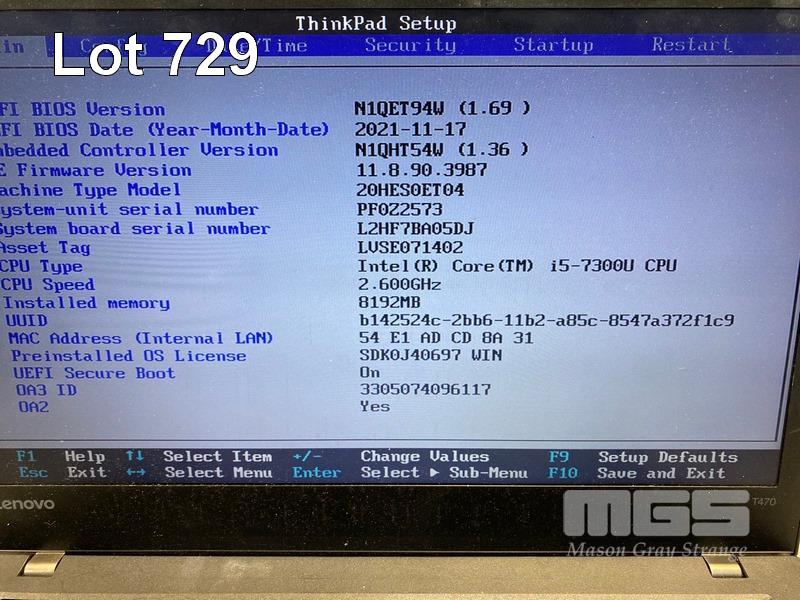 LAPTOP, LENOVO THINKPAD T470, TYPE 20HE, CORE i5 7300U (7TH GEN) @ 2.6GHz, 8GB DDR4 RAM, 256GB NVMe M.2 SSD, 14" WIDESCREEN (1366x768), INTEL HD VIDEO, Wi-Fi, BLUETOOTH, WINDOWS 10 PRO INSTALLED & POWER SUPPLY (NOTE: MINOR MARKS ON SCREEN, WHITE SPOT SCREEN BLEMISHES, BATTERY ERROR MESSAGE)