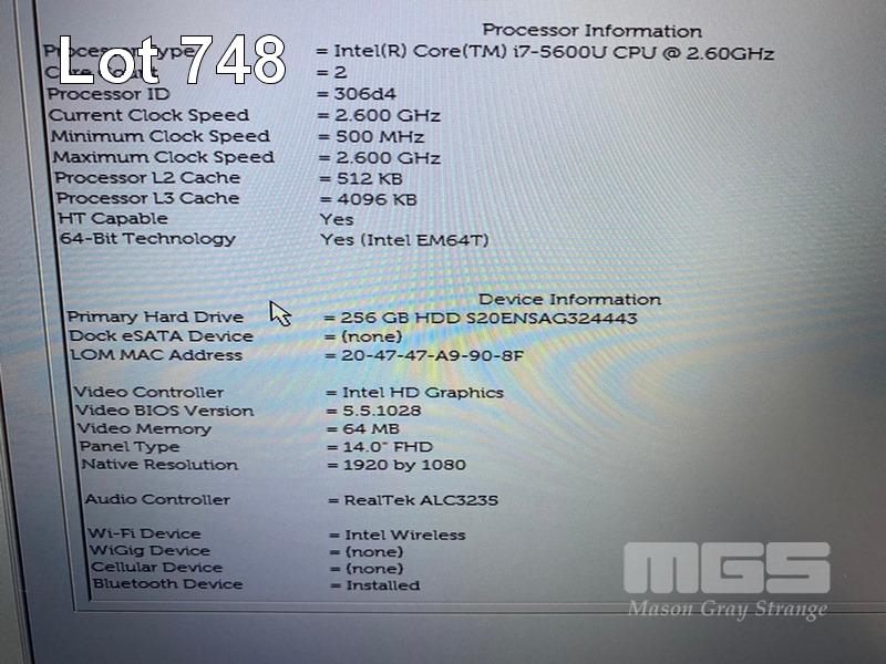 LAPTOP, DELL LATITUDE E7450, CORE i7 5600U (5TH GEN) @ 2.6GHz, 8GB DDR3 RAM, 256GB SSD, 14" WIDESCREEN (1920x1080), INTEL HD VIDEO, Wi-Fi, BLUETOOTH, WINDOWS 10 HOME INSTALLED & POWER SUPPLY S/N:F3SJT32