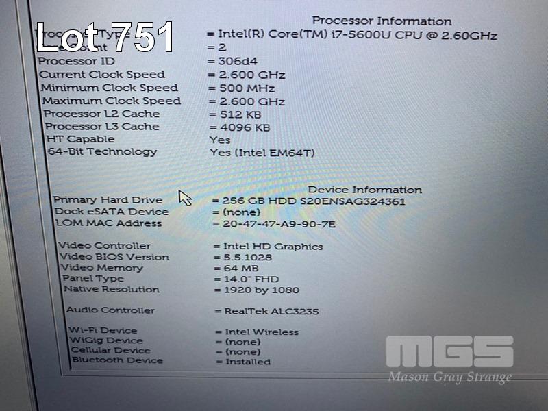 LAPTOP, DELL LATITUDE E7450, CORE i7 5600U (5TH GEN) @ 2.6GHz, 8GB DDR3 RAM, 256GB SSD, 14" WIDESCREEN (1920x1080), INTEL HD VIDEO, Wi-Fi, BLUETOOTH, WINDOWS 10 HOME INSTALLED & POWER SUPPLY S/N:B6VPT32