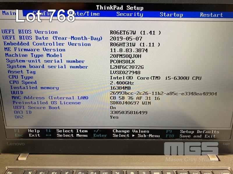 LAPTOP, LENOVO THINKPAD T460, TYPE 20FM, CORE i5 6300U (6TH GEN) @ 2.4GHz, 16GB DDR3 RAM, 525GB SSD, 14" WIDESCREEN (1920x1080), INTEL HD VIDEO, Wi-Fi, BLUETOOTH, WINDOWS 10 PRO INSTALLED & POWER SUPPLY S/N:PC0HS0LX