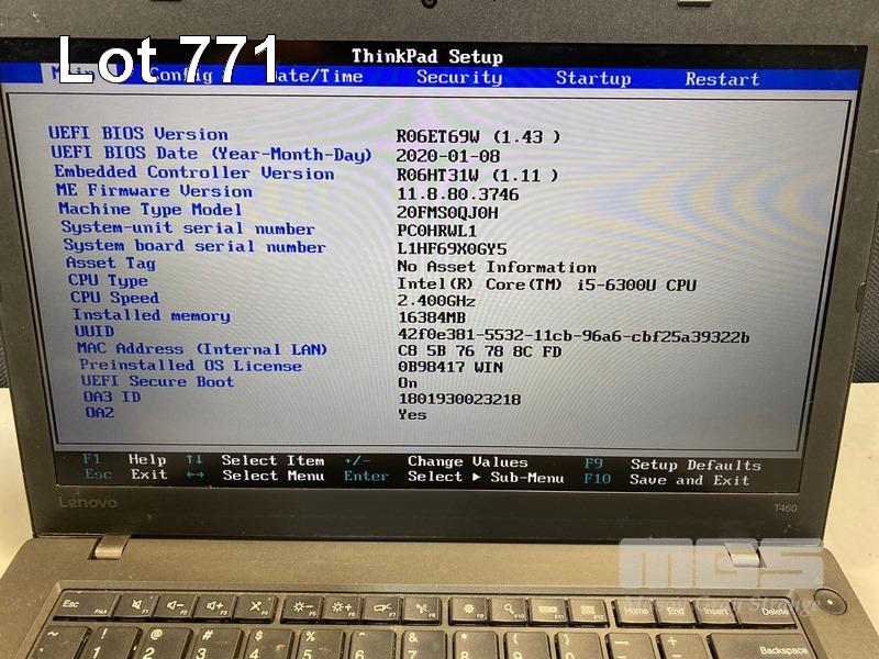 LAPTOP, LENOVO THINKPAD T460, TYPE 20FM, CORE i5 6300U (6TH GEN) @ 2.4GHz, 16GB DDR3 RAM, 256GB SSD, 14" WIDESCREEN (1920x1080), INTEL HD VIDEO, Wi-Fi, BLUETOOTH, WINDOWS 10 PRO INSTALLED & POWER SUPPLY (NOTE: MINOR MARKS ON SCREEN) S/N:PC0HRWL1